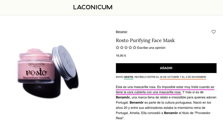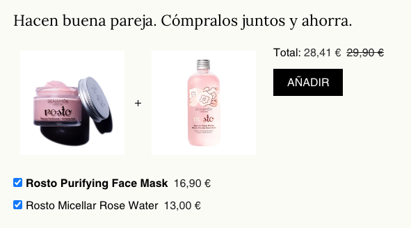 Y, si quieres aprovechar para ofrecer un descuento por comprar uno de esos productos complementarios, como hace Laconicum, pues, oye, mejor que mejor.